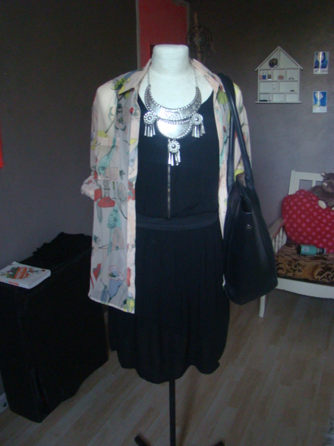 -J'ai mis un pull noir à paillettes pour egayer la tenue .Il a un voile dans le dos ,et je l'avais achetée dans un toute petite boutique dont je ne me rappeller meme pas le nom.