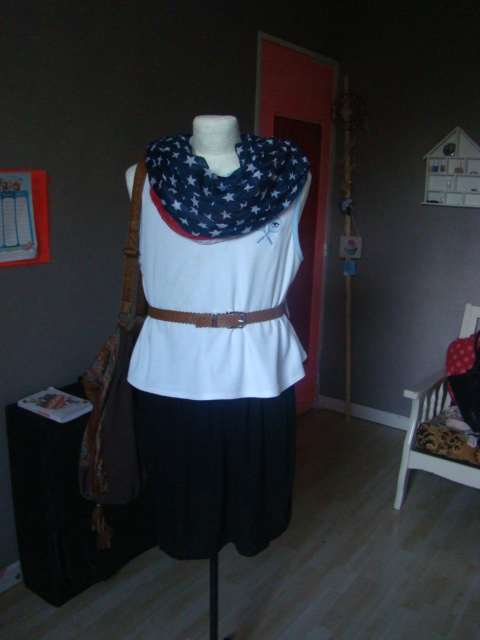 Pendant cette saison on a tendance à avoir chaud mais pourtant le vient faire quelques apparitions ,alors c'est pour ça que j'ai ajouté un foularsd aux couleurs des states qui m'a été offert par une de mes amies (clein d'oeil à toi si tu passes par là ;)