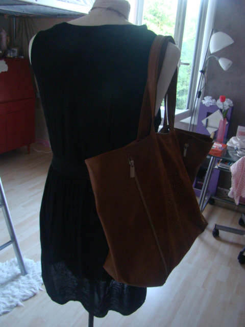 -Mon sac je l'ai acheté à Pimkie ,c'est un sac cabas noir avec des petites ouvertures un peu comme un store sur les deux faces .